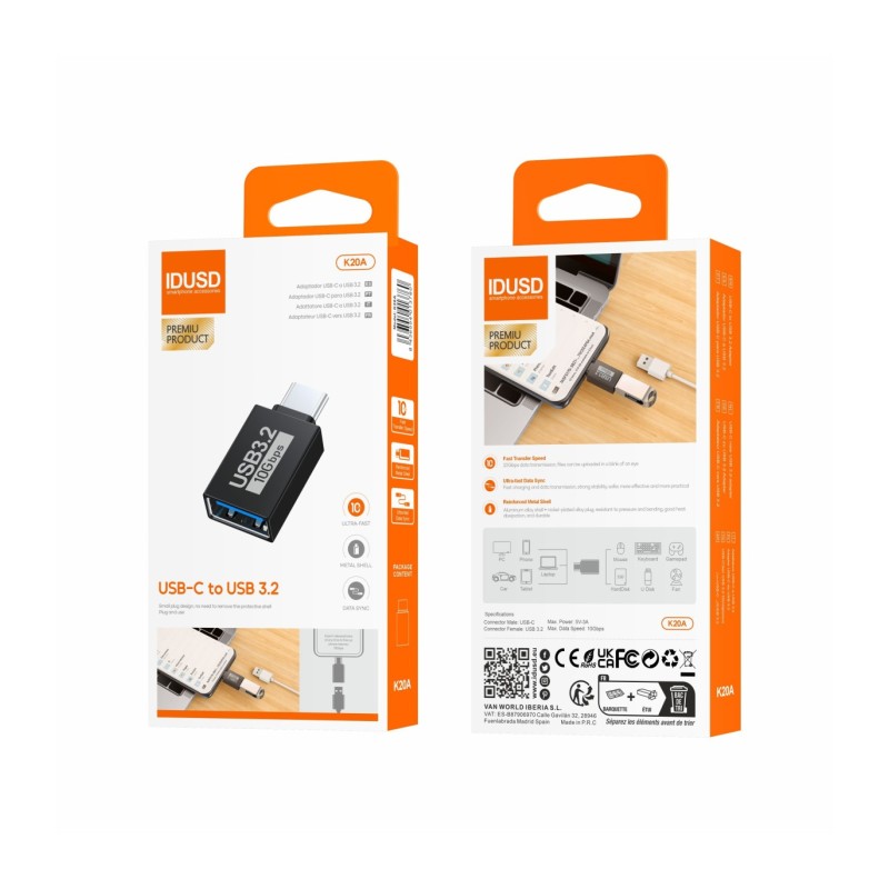 Adaptador USB-C para USB 3.2 M/H K20A – Alta Velocidade, Carregamento Eficiente e Compatibilidade Universal