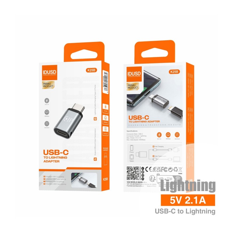 O Adaptador USB-C para Lightning M/H K25B é um acessório essencial e versátil, projetado especificamente para usuários de dispositivos Apple modernos. Com uma capacidade de carregamento de até 5V-2.1A e uma velocidade de transferência de dados de até 480Mbps, este adaptador de alumínio combina eficiência, velocidade e durabilidade. Ideal para conectar seu iPhone, iPad ou iPod a portas USB-C, oferecendo uma experiência de carregamento e transferência de dados rápida e confiável.