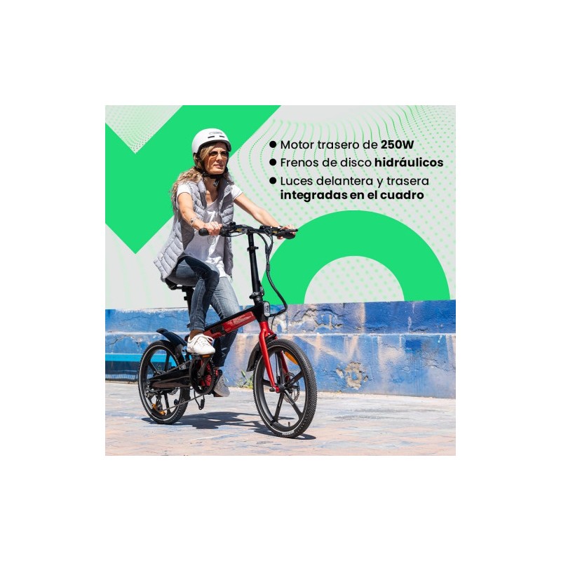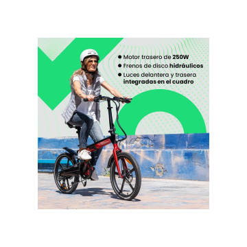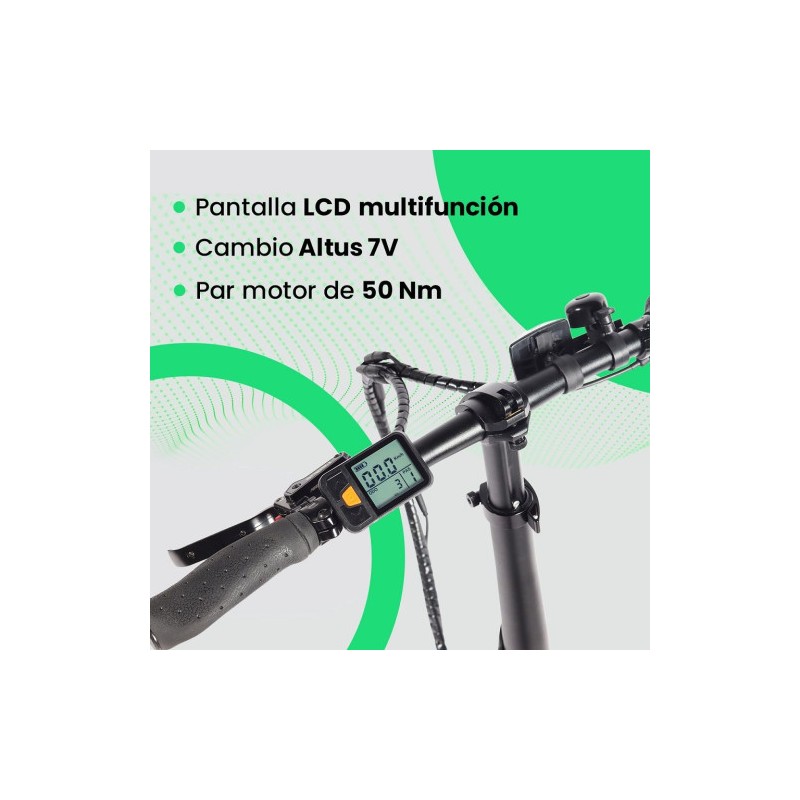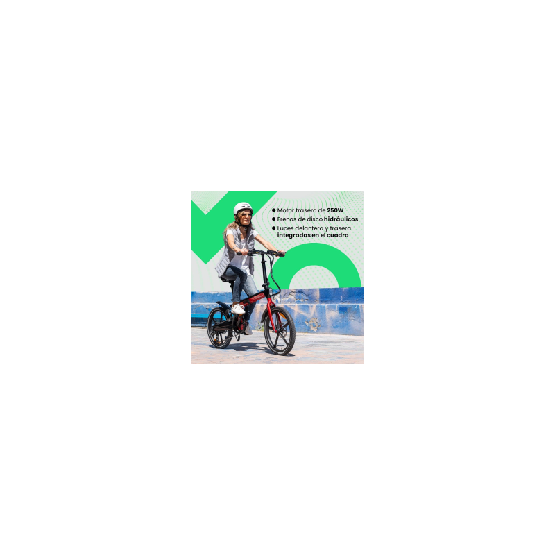 Bicicleta elétrica dobrável urbana Youin Oslo BK1900 de 20 polegadas com motor de 250 W, bateria no tubo do selim, travões hidráulicos Shimano 7V, quadro de carbono, autonomia real de 45 km e display de LED.