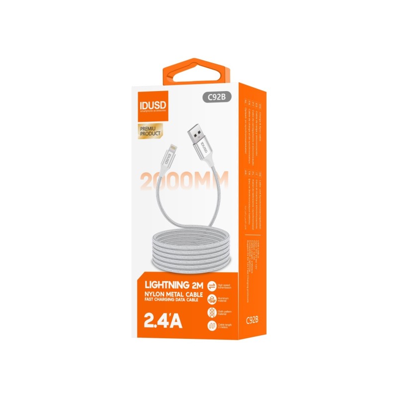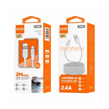 Com um comprimento estendido de 2 metros, este cabo proporciona flexibilidade adicional, permitindo carregar seus dispositivos a partir de uma distância confortável. Fabricado com nylon trançado resistente e conectores metálicos, foi projetado para suportar o uso diário intenso, garantindo longa vida útil e uma conexão confiável.