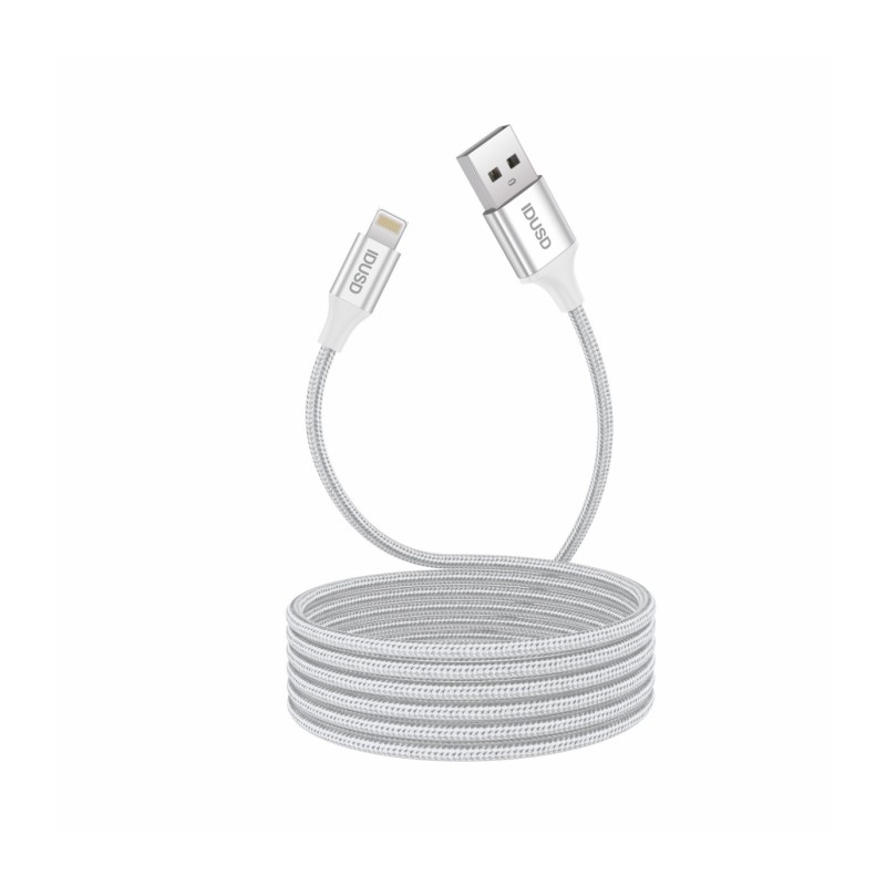 Cabo Lightning de Nylon Trançado Branco 2M 2.4A – Carregamento Rápido e Compatibilidade com iOS