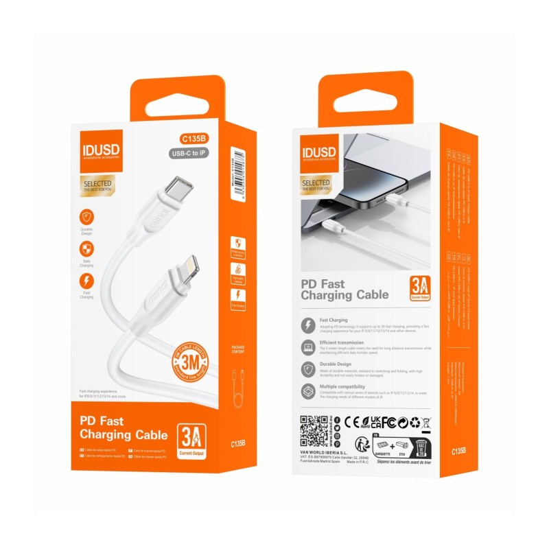 - Carregamento Rápido ≤3A com PD: Garante carregamento rápido e eficiente.