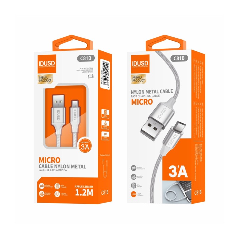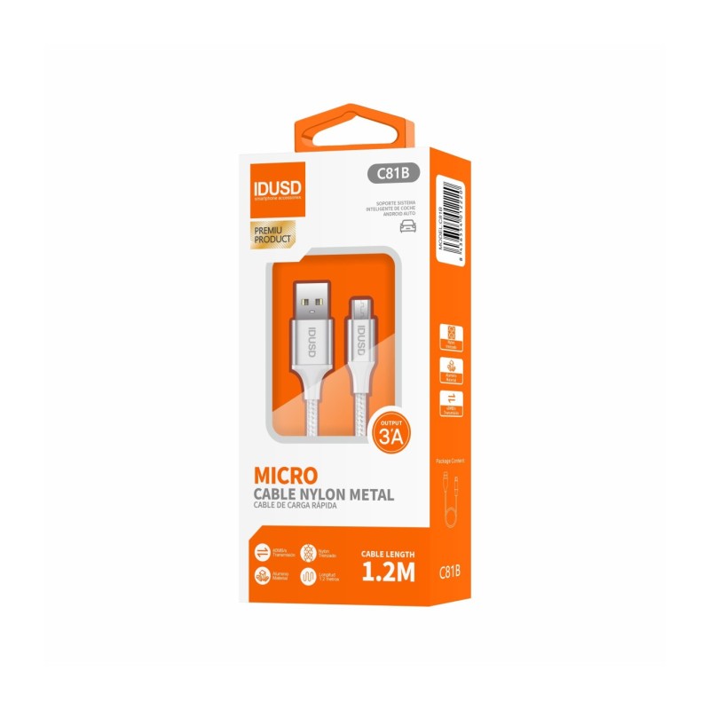 O Cabo Micro USB de Nylon Trançado 1.2M 3A é projetado para atender às necessidades de carregamento e transferência de dados de forma rápida e confiável. Compatível com carregamento rápido de 5V, 9V e 12V e com saída máxima de 3A, este cabo garante recargas eficientes, reduzindo o tempo de espera para carregar seus dispositivos.