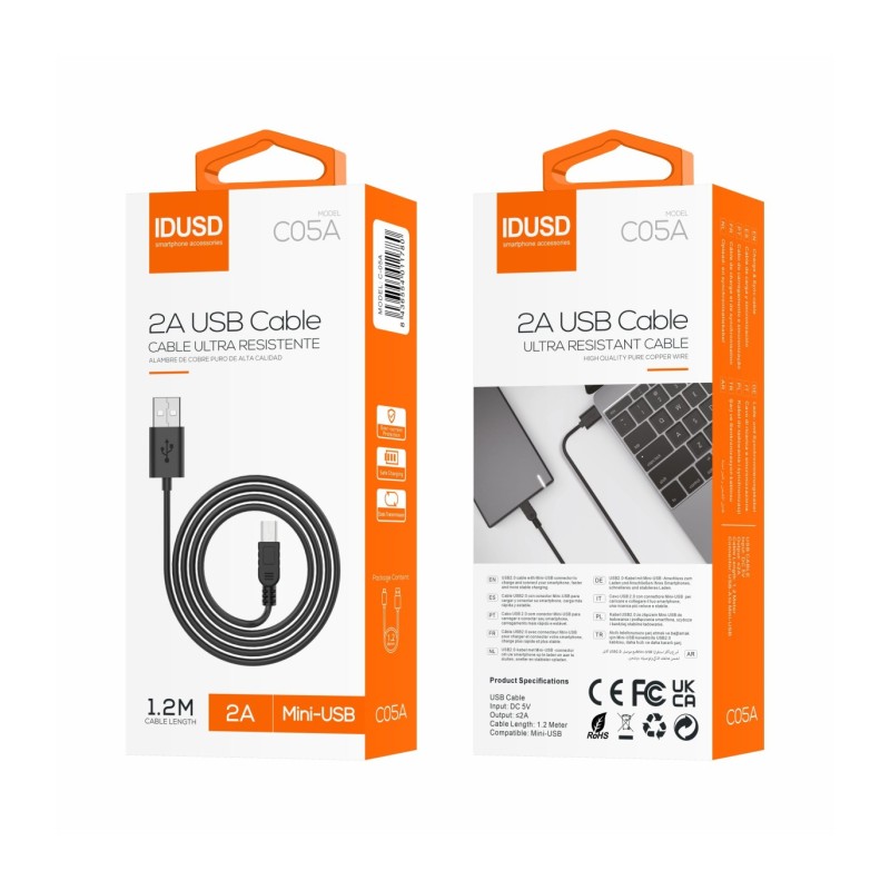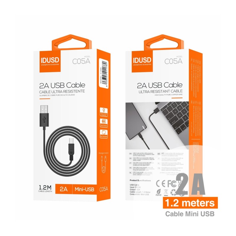 Este cabo possui um conector Mini USB para USB, garantindo compatibilidade com uma ampla gama de dispositivos. Seu comprimento de 1,2 metros proporciona flexibilidade para usá-lo confortavelmente em casa, no escritório ou no carro. Além disso, é fabricado com materiais de alta qualidade que o tornam resistente ao uso diário e garantem um desempenho confiável a longo prazo.