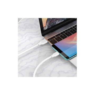 O Cabo Turbo Type-C Branco 2M 3A combina velocidade e conveniência, permitindo carregar e sincronizar dispositivos USB-C a partir de tomadas distantes. Projetado para suportar o uso intensivo diário, é ideal para smartphones e tablets.