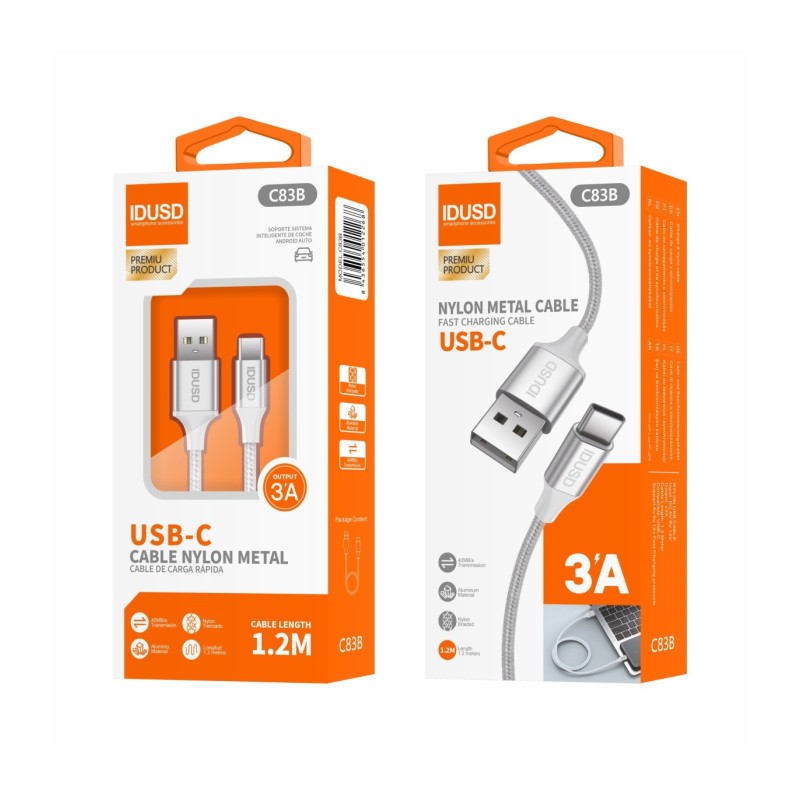 Cabo USB-C de Nylon Trançado 1,2M 3A - C83B