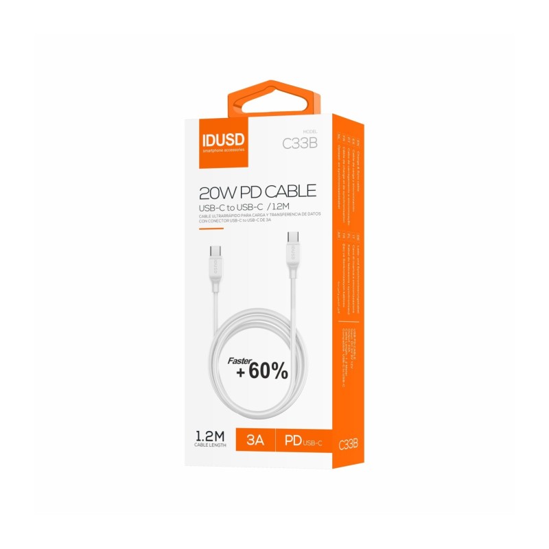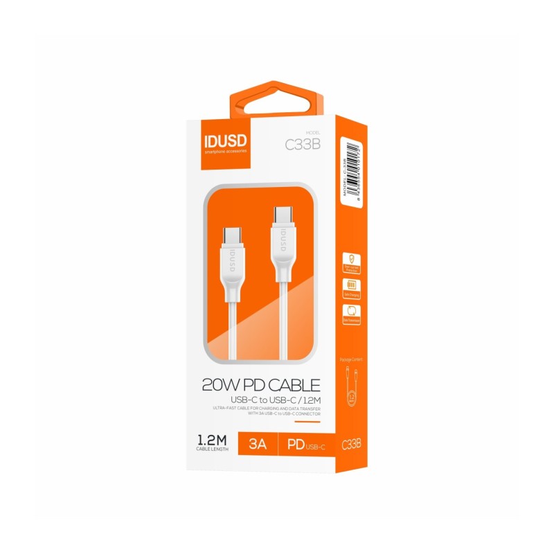 Seu comprimento de 1,2 metros proporciona a flexibilidade necessária para conectar-se confortavelmente a tomadas distantes, sendo prático para usar em casa, no escritório ou durante viagens. É compatível com uma ampla gama de dispositivos USB-C e otimizado para trabalhar com o carregador PD3.0 CHARGER IDUSD (D60B), maximizando sua funcionalidade.