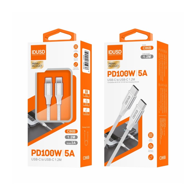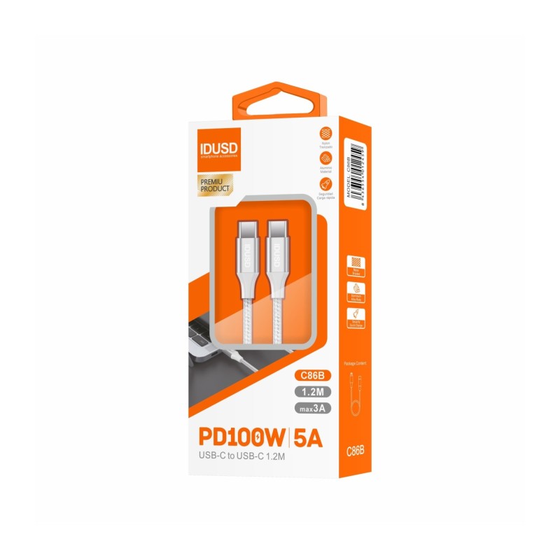 Cabo PD de Nylon USB-C para USB-C 1,2M 5A - C86B