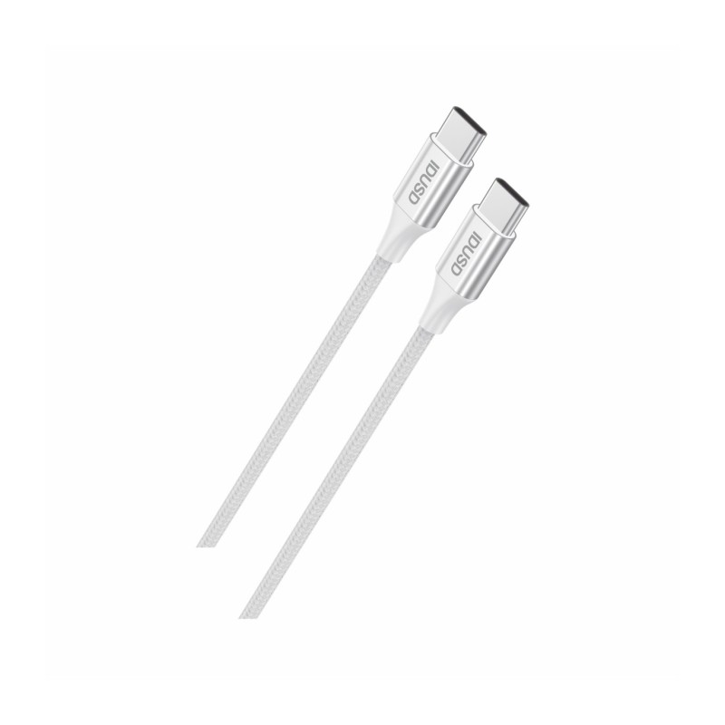 Cabo Nylon Trançado USB-C para USB-C Branco 1.2M 5A – Carregamento Rápido e Durabilidade Superior