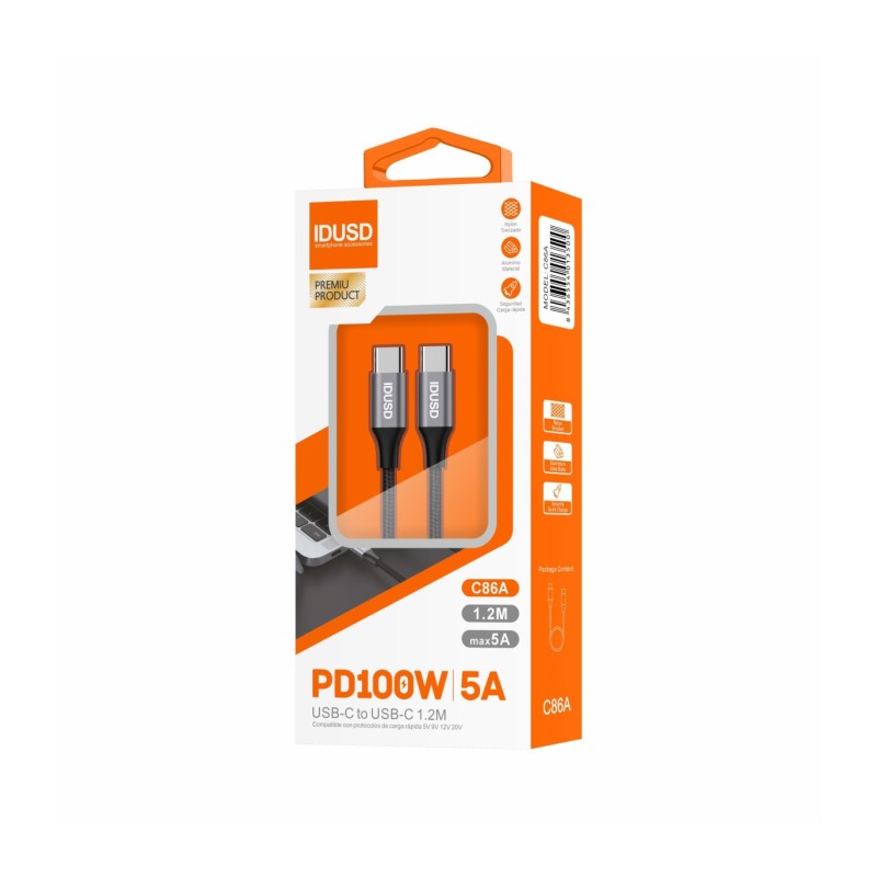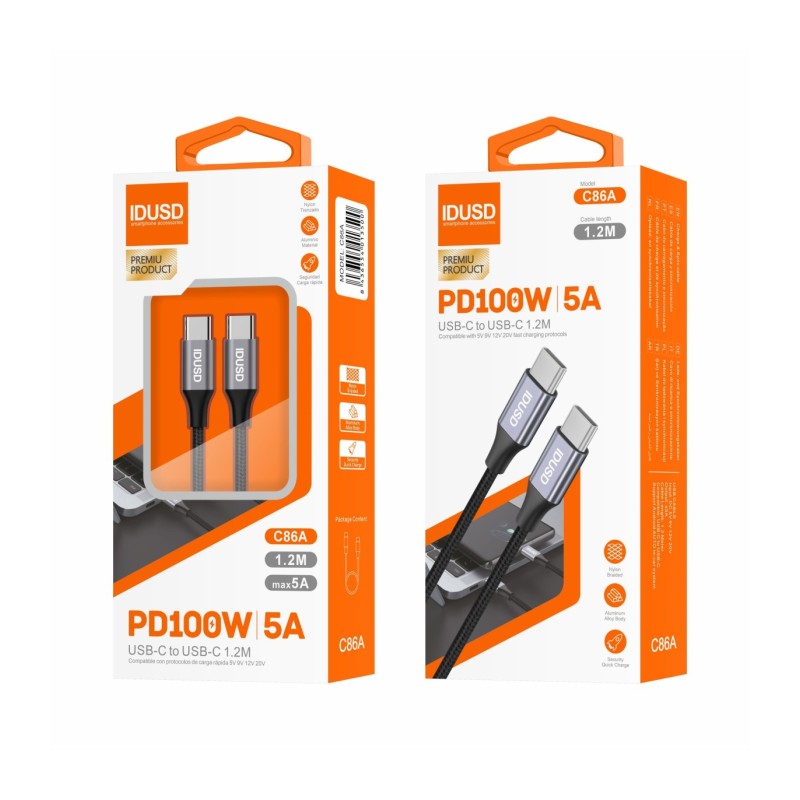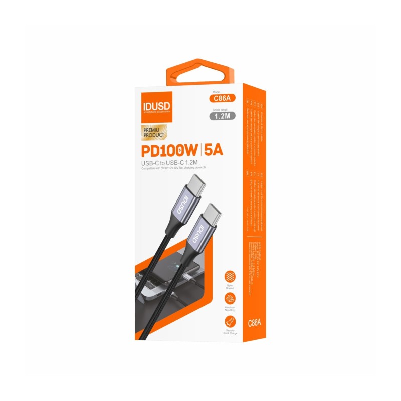 Cabo Nylon PD USB-C para USB-C 1,2M 5A - C86A