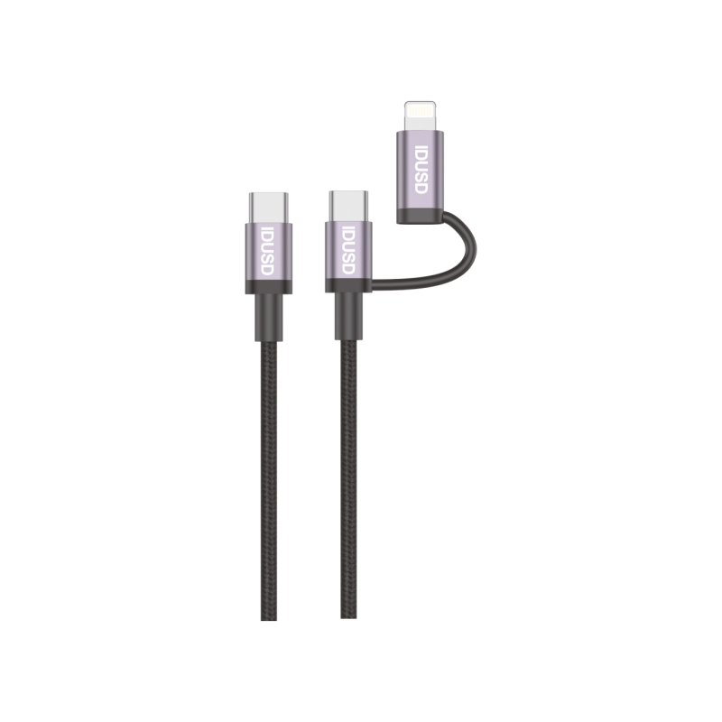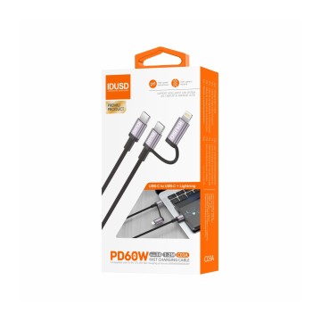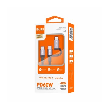 Cabo de Nylon de Alumínio 2 em 1 – USB-C e Lightning, PD 60W, 1.2M