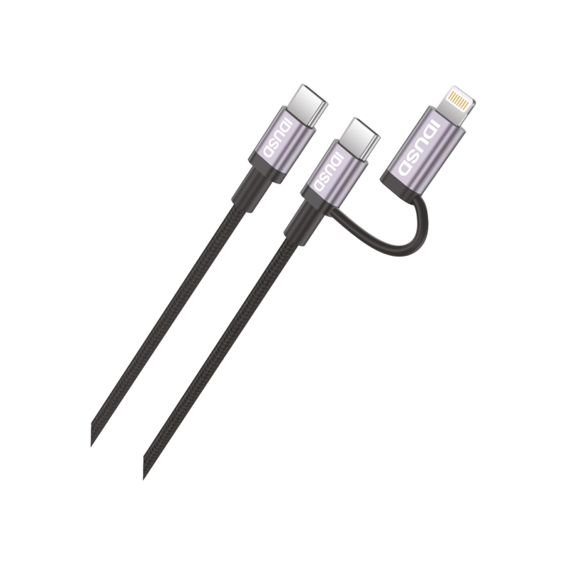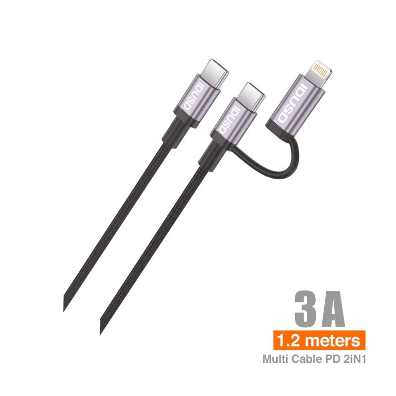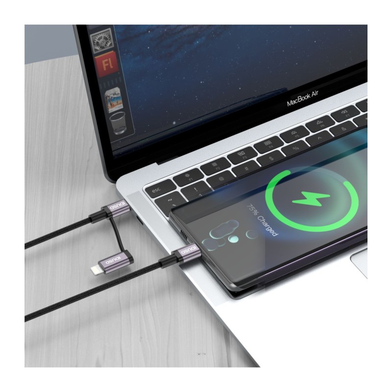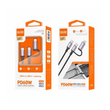 Cabo de Nylon de Alumínio 2 em 1 – USB-C e Lightning, PD 60W, 1.2M