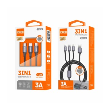 O Cabo de Nylon 3 em 1 de 1,2 metros combina funcionalidade e durabilidade, tornando-se um acessório indispensável para quem precisa carregar e transferir dados em diferentes dispositivos. Compatível com USB-C, Micro USB e Lightning, este cabo elimina a necessidade de múltiplos cabos.