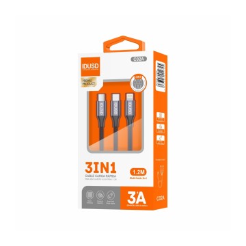 Cabo de Nylon 3 em 1 – Carregamento Rápido e Transferência de Dados, 1.2M