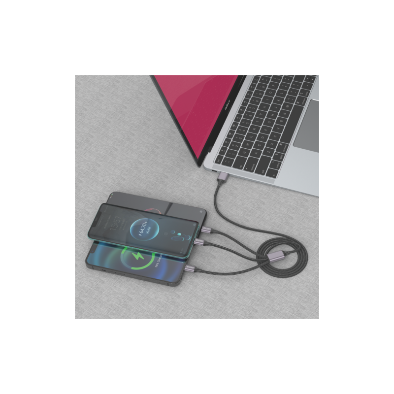 Design 3 em 1: Carregamento e dados para múltiplos dispositivos em um único cabo.