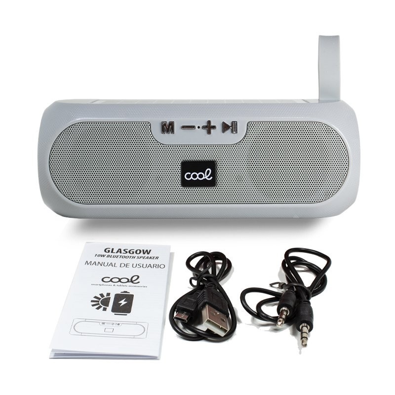 Altifalante COOL Glasgow 10W. Compatível com todos os dispositivos Bluetooth. Alto-falante de alta fidelidade, som claro e nítido. O alto-falante tem um alcance de distância de até 10 metros. Com a linha auxiliar, pode conectar dispositivos externos como tablet, computador, televisão, celular...