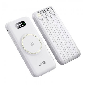 Bateria externa COOL de 10.000 mAh + carregamento sem fio Qi com 4 conexões.
