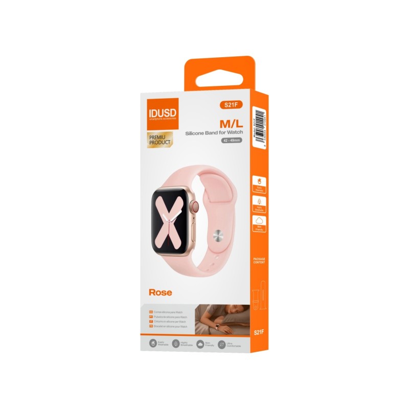 Pulseira de silicone ultraconfortável, fácil de limpar e respirável, projetada para adultos no tamanho M/L. Compatível com Apple Watch e IDUSD Watch, combina qualidade, funcionalidade e um design moderno para uso diário.