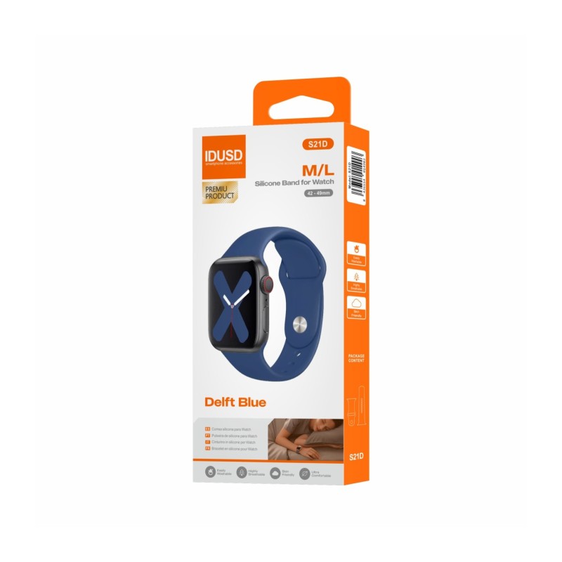 Pulseira de silicone ultraconfortável, fácil de limpar e respirável, projetada para adultos no tamanho M/L. Compatível com Apple Watch e IDUSD Watch, combina qualidade, funcionalidade e um design moderno para uso diário.