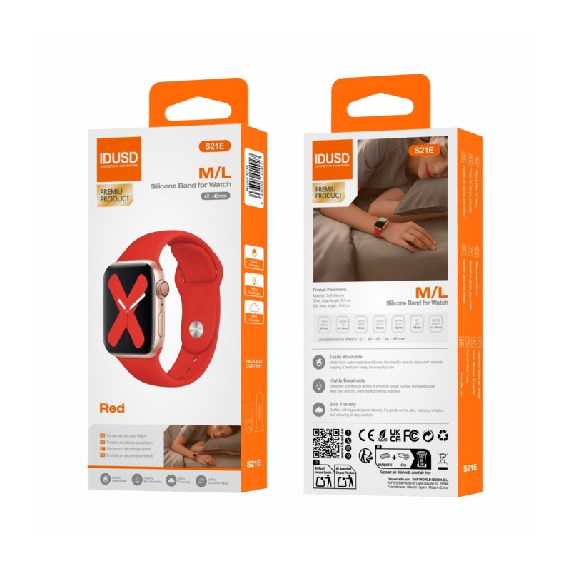Pulseira de silicone ultraconfortável, fácil de limpar e respirável, projetada para adultos no tamanho M/L. Compatível com Apple Watch e IDUSD Watch, combina qualidade, funcionalidade e um design moderno para uso diário.