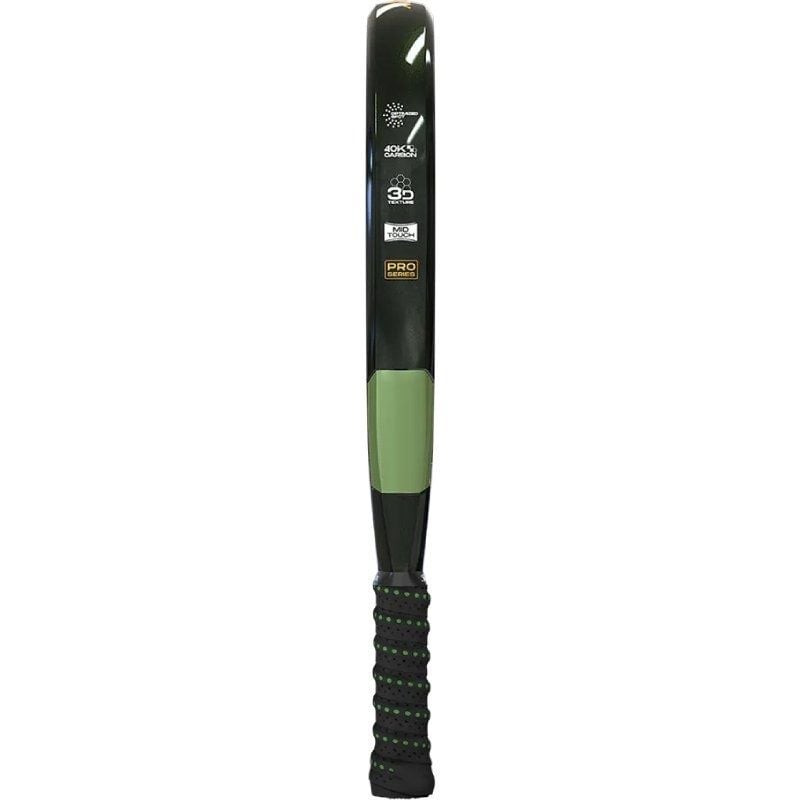 A raquete incorpora fibra de carbono 40K nas faces, um material elástico de alta densidade que oferece resposta imediata e precisa ao impacto. Sua estrutura de carbono 3K garante resistência e rigidez estrutural, enquanto o núcleo de borracha EVA macia proporciona uma sensação intermediária, ideal para manter o controle da bola sem comprometer a potência em golpes decisivos. O acabamento brilhante com textura 3D ajuda a gerar spin e aprimorar o controle em golpes técnicos.