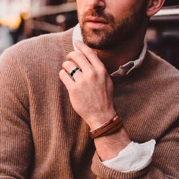 Apresentamos este Anel Inteligente COOL Health, feito de aço puro ultrarresistente. Acabamento preto com laterais prateadas.