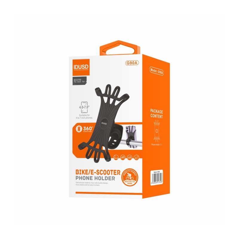 O Suporte de Silicone para Bicicleta e Patinete (Ref: G90A) é a solução perfeita para manter seu telefone móvel seguro, acessível e visível enquanto você desfruta de seus deslocamentos sobre duas rodas. Graças à sua rotação de 360°, você poderá ajustar o ângulo de visão que melhor se adapta às suas necessidades, seja para seguir o GPS, controlar seu desempenho ou ouvir sua música favorita.