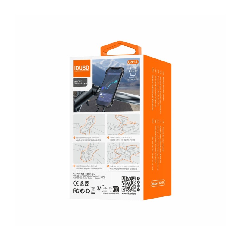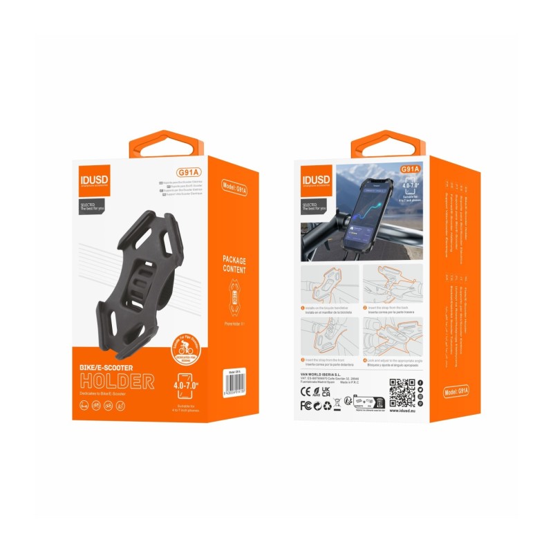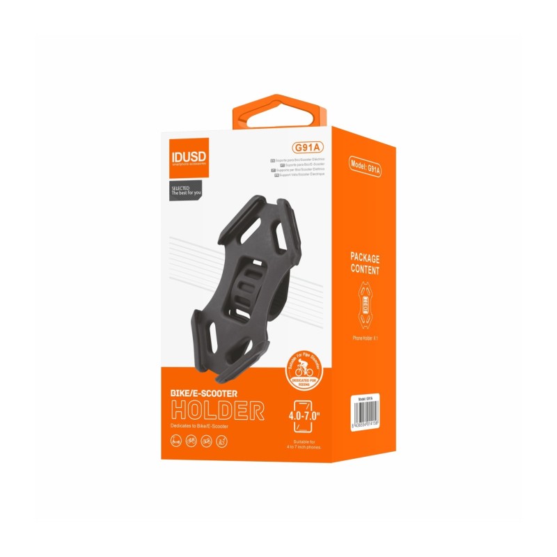 O Suporte Bike/E-Scooter Silicone (Ref: G91A) é a solução ideal para assegurar seu smartphone em bicicletas, patinetes elétricos, carrinhos de bebê e mais. Projetado em silicone de alta qualidade, ajusta e protege dispositivos de 4.5" a 6.5" com um agarre antideslizante, proporcionando facilidade de instalação, acesso completo ao telefone e maior segurança em seus deslocamentos.