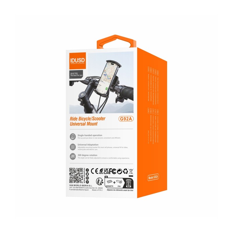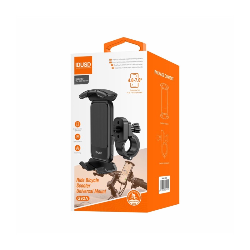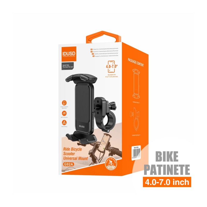 O Suporte Ride Bike/E-Scooter (Ref: G92A) combina funcionalidade, segurança e conveniência em um único dispositivo, pensado para aqueles que querem manter seu telefone móvel ao alcance enquanto se deslocam em duas rodas. Com sua operação com uma só mão, colocar ou retirar o telefone resulta simples e rápido, permitindo que você mantenha a concentração no caminho.
