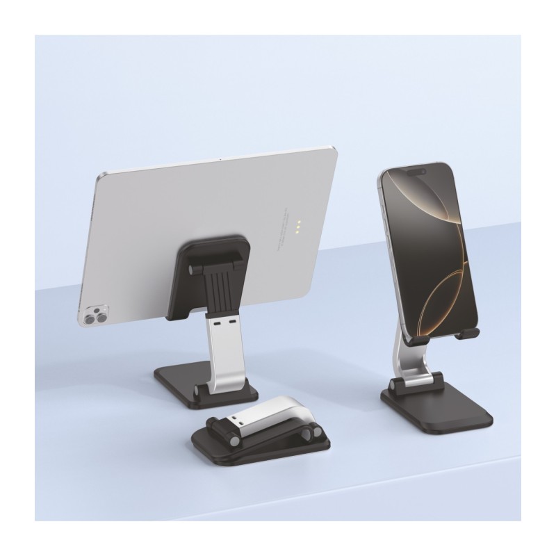 O Suporte Dobrável ECO Holder é um acessório versátil e portátil projetado para segurar com segurança dispositivos de 4 a 10 polegadas, como smartphones e tablets. Fabricado com materiais de alta qualidade, incluindo ABS, silicone e metal, este suporte oferece durabilidade e estabilidade em diversas situações.