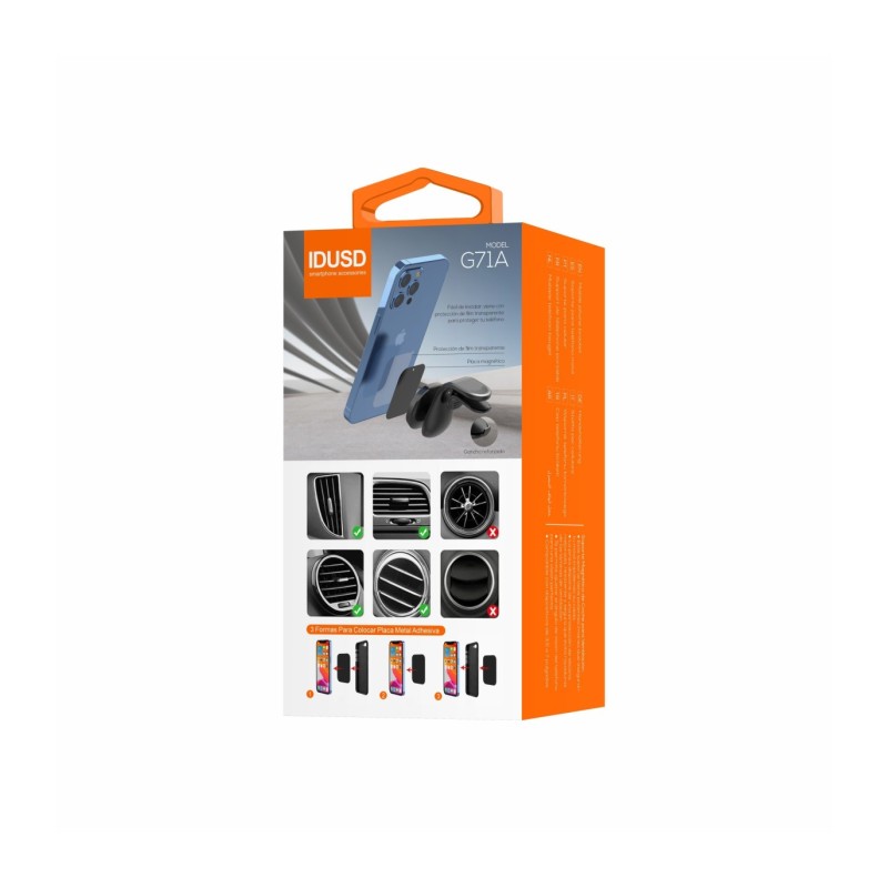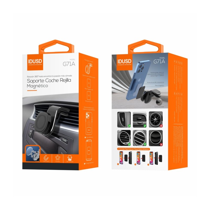 Instalá-lo é simples e rápido: basta colocá-lo na rejilla de ventilação. Com o Suporte Magnético One Click 360°, você desfrutará de uma condução mais confortável, segura e eficiente, tendo seu smartphone sempre à mão para as funções que precisar durante a viagem.