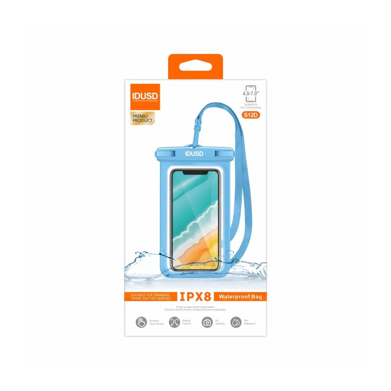 Capa Impermeável para Telemóvel Praia Azul - S12D – Proteção Total para 4 a 7 Polegadas