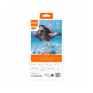 Experimente a máxima proteção com a Capa Praia Azul S12D, projetada para manter o seu telemóvel seguro e funcional em condições extremas. Compatível com dispositivos de 4 a 7 polegadas, esta capa oferece impermeabilidade excepcional com certificação IPX8 até 30 metros de profundidade. Fabricada em PVC macio e durável, garante alta sensibilidade ao toque e visibilidade clara. Inclui uma alça de clipe robusta para segurar o dispositivo em qualquer aventura ao ar livre ou esporte aquático.