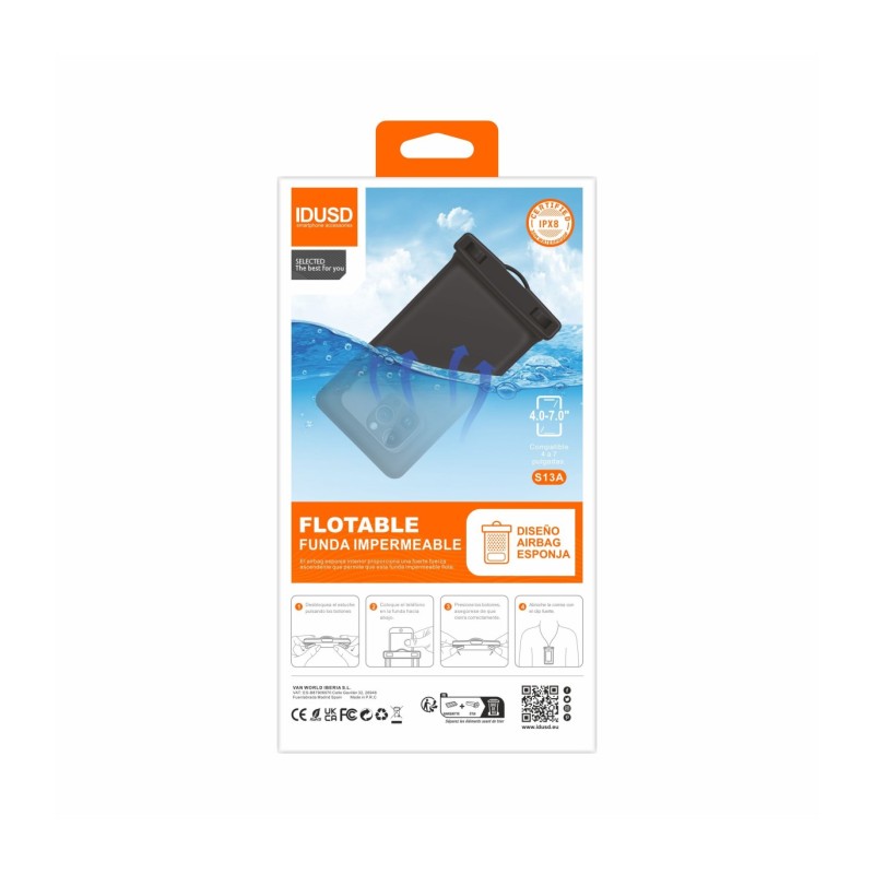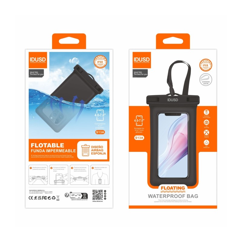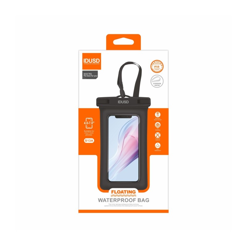 Explore e desfrute de atividades aquáticas com total confiança usando a nossa Capa Praia PVC Flutuante Preto - S13A. Projetada para dispositivos móveis de 4 a 7 polegadas, esta capa oferece proteção superior contra água, choques e quedas graças ao seu material robusto de PVC e ao design interno com airbag de esponja que garante que o seu telemóvel flutue na água. Perfeita para qualquer aventura aquática, a capa mantém o seu dispositivo seguro e seco, permitindo que você o use normalmente devido ao material de alta sensibilidade ao toque.