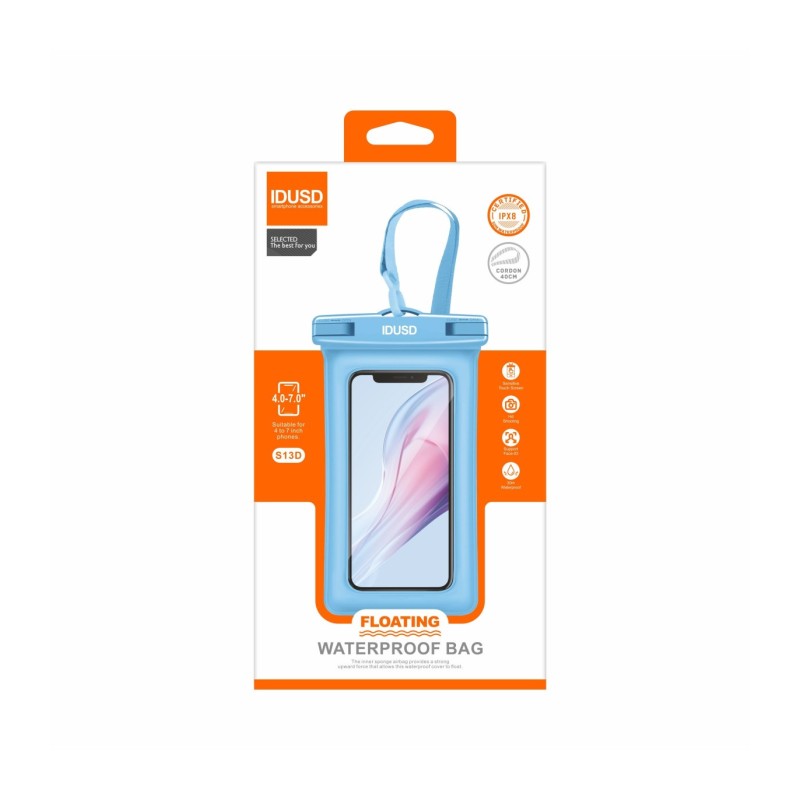 Capa Praia PVC Flutuante Azul - S13D – A solução definitiva para proteger o seu telemóvel durante atividades aquáticas e aventuras ao ar livre. Esta capa não só oferece proteção impermeável certificada, mas também apresenta um design flutuante que garante que o dispositivo nunca afunde.