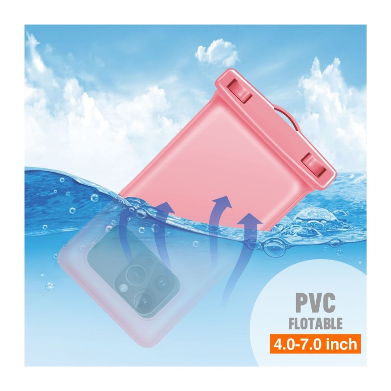 Capa Flutuante para Telemóvel Praia PVC Rosa - S13F – Impermeabilidade e Flutuação Garantidas