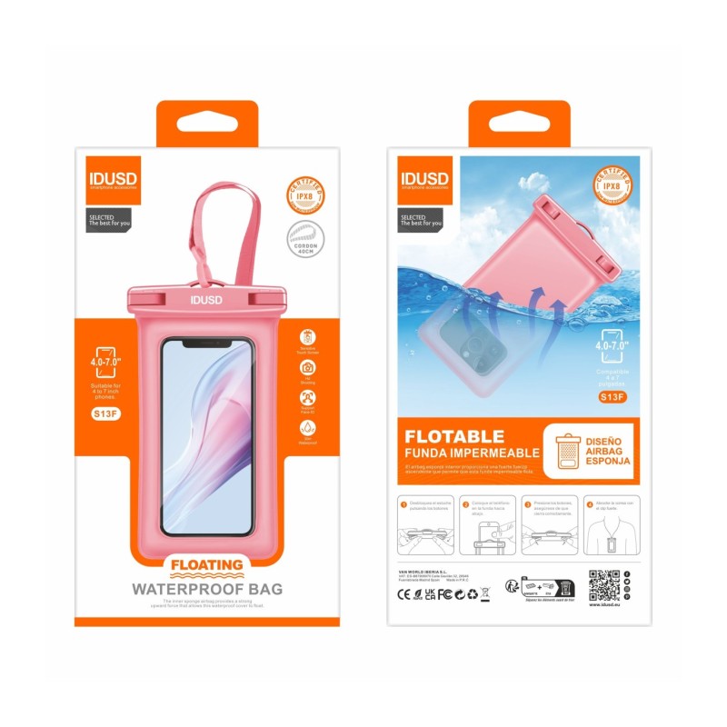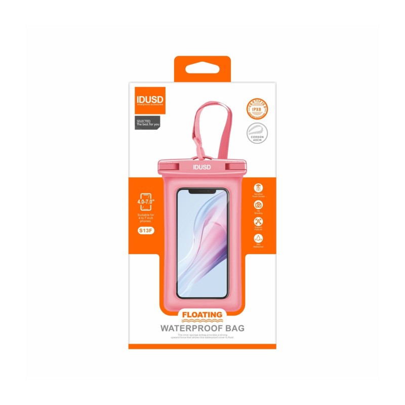 Explore e desfrute de atividades aquáticas com total confiança usando a nossa Capa Praia PVC Flutuante Rosa - S13F. Projetada para dispositivos móveis de 4 a 7 polegadas, esta capa oferece proteção superior contra água, choques e quedas graças ao seu material robusto de PVC e ao design interno com airbag de esponja que garante que o seu telemóvel flutue na água. Perfeita para qualquer aventura aquática, a capa mantém o seu dispositivo seguro e seco, permitindo que você o use normalmente devido ao material de alta sensibilidade ao toque.