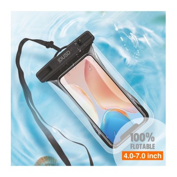 Leve o seu telemóvel para qualquer aventura aquática com a Capa de Praia 100% Flutuante TPU - S14A. Projetada para dispositivos de 4 a 7 polegadas, esta capa oferece proteção superior com materiais duráveis e macios de TPU e ABS que permitem uma operação tátil precisa. Sua flutuabilidade 100% garantida e o bloqueio seguro aprimorado com ABS de alta qualidade garantem que o seu telemóvel permaneça seguro e flutuante em qualquer ambiente. Perfeita para atividades aquáticas intensas, possui certificação IPX8 para imersões de até 30 metros.